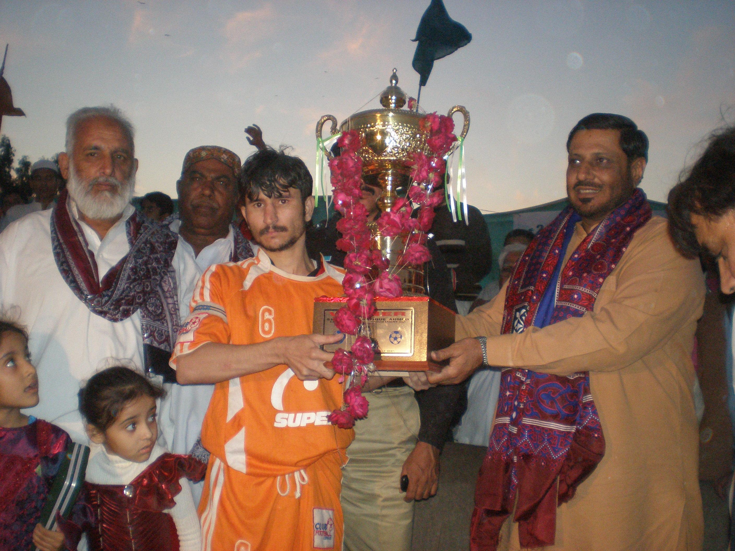 Natha Khan Union took 1-0 lead in 15th minute through captain Ahmed Sultan in what turned out to be an exciting final. The score remained such at half time. In 2nd half, Hazara Mohammadan pulled level when Alam Zeb scored from the penalty spot after intense pressure against the Natha defence. Upon referee Muhammad Saeed’s final whistle, the match was drawn 1-1 that led straight to penalties. Hazara Muhammad won 4-3 to be awarded winner’s trophy.