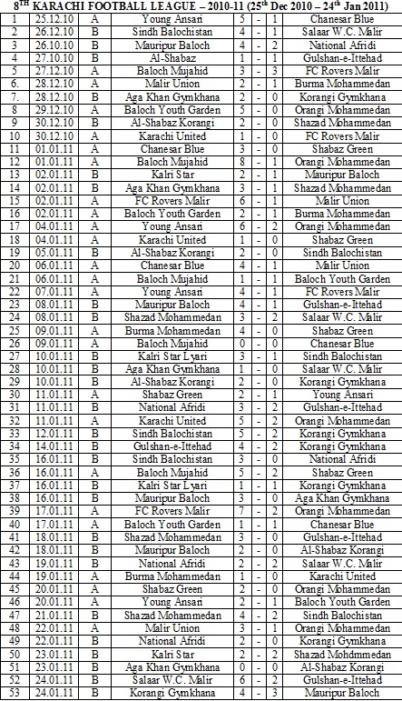 8TH KARACHI FOOTBALL LEAGUE 2010-11