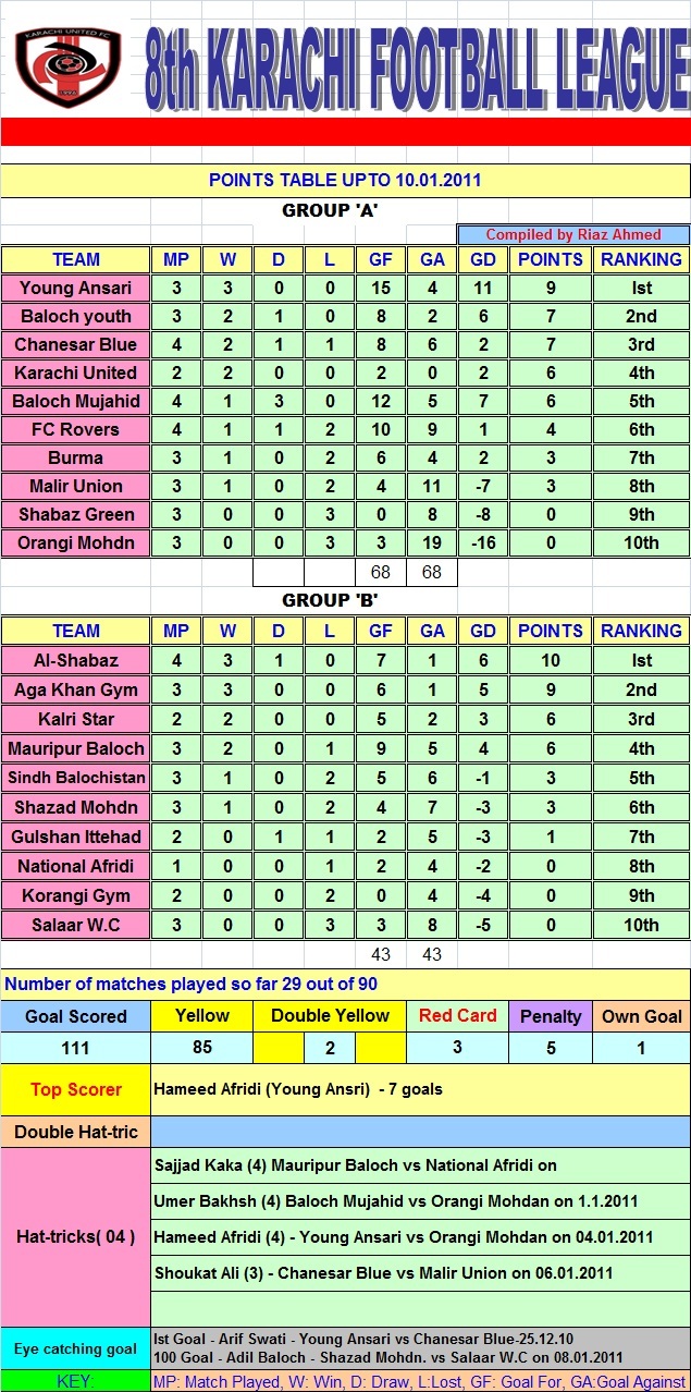 8TH KARACHI FOOTBALL LEAGUE 2010-11