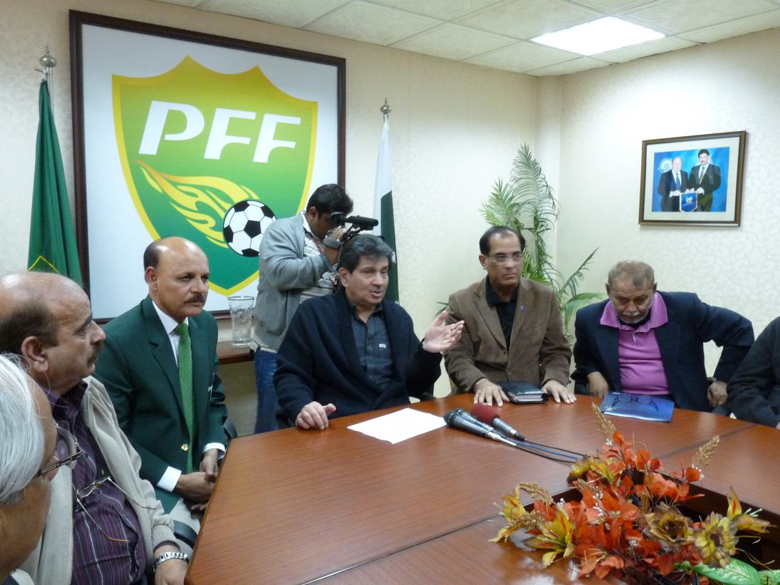 Lahore, 6 February: “Go extra mile to achieve the target. If Pakistan can outpace India in overall soccer gold medal tally of South Asian Games and Pakistan turned the tide in sensational way in both legs against Singapore in same Olympics Qualifiers four years ago, why not the present team. There is a psychological factor in the Thailand-bound team. I hope team coaching staff will try all out to bring a winning, aggressive mentality in the boys. One of the things I look for in a player is his overall determination, habits and their mental make-up,” this is stated by Pakistan Football Federation (PFF)’s President Makhdoom Syed Faisal Saleh Hayat (MNA) on the eve of Pakistan’s Tour to Thailand while talking to officials/players at FIFA Football House today.