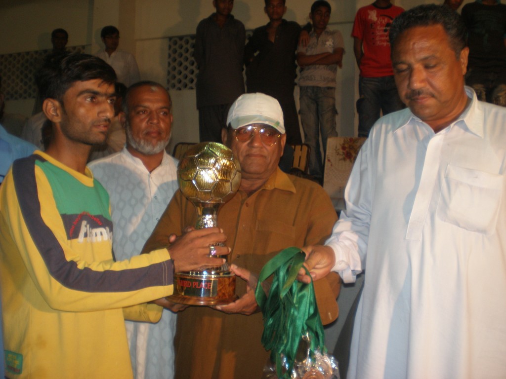 Baloch Youth Garden won the winner’s trophy alongside Rs 50,000 award, Mauripur Baloch got runner-up trophy and Rs 30,000, while Baloch Mujahid earned 3rd place trophy and Rs 10,000 award. The players of each teams earned their respective gold, silver, and bronze medals. Further more, Karachi United’s Rehan Munir was declare Player of the Tournament, Young Ansari’s Hameed Afridi was Top Scorer, Adnan Khan was Best Referee, Farrukh Riaz was Best Assistant Referee, and Orangi Mohammadan earned Fair Play Trophy with all said individuals earning cash prizes of Rs 5,000 each. Baloch Mujahid’s Abdul Malik was given Best Emerging Player shield. All prizes were distributed by the chief guest and others present at the occasion.
