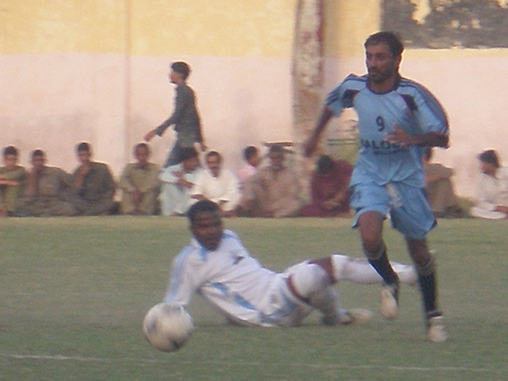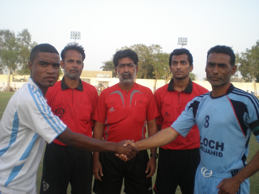 The game began in frantic pace with both sides going hard for goals, only to be denied by the defence and goalkeepers of each other. Baloch Mujahid’s forward line of Muhammad Hanif, Muhammad Rizwan, Muhammad Nadeem and Umer Bakhsh each came close to scoring but Mauripur Baloch’s defence of Sameer Jahangir, Khalid Sakhi, Jalal, Sameer Samad and goalkeeper Nabeel Baloch were ready to deal with the pressure. In response Mauripur’s midfield of Adnan Sakhi, Majid Baloch, and Abdul Rasheed provided their strikers Lal Bakhsh Lala, Sajjad Kaka, and Muhammad Kamra with good passes but the Baloch Mujahid defence of Salal Raza, Muhammad Nawaz, Nabi Bakhsh, Shahzad Majeed and goalkeeper Shahzad Ali held firm.