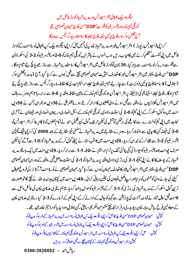Madina Shabaz (3) : Saqib Rehman 20, Yousuf Kaka 29, Hidayat Ullah 49