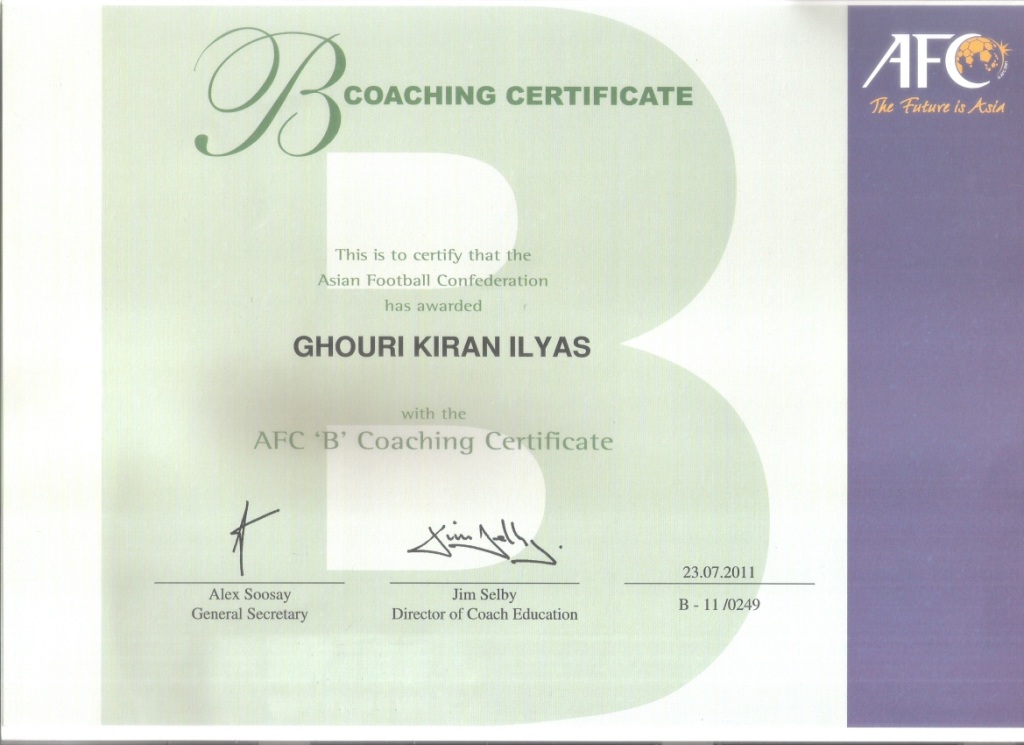 It is pertinent to mention that the AFC ‘B’ Coaching Certificate is for coaches who already have the ‘C’ Certificate. The course is designed to educate coaches in the advanced techniques and skills of the game, and to help them develop a better understanding of individual or groups of players, tactics and the mental requirements of the game.