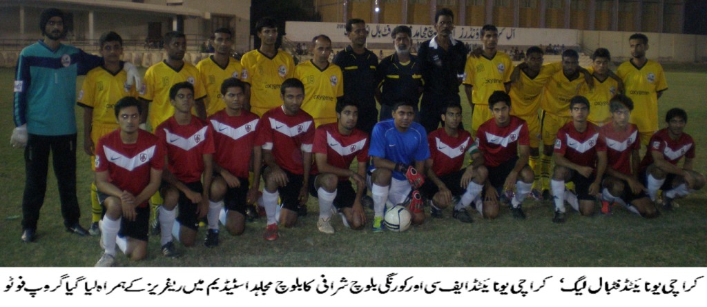 The 9th UBL Omni Karachi United Football League 2011-12 saw tournament hosts Karachi United FC come from 0-2 to hold Korangi Baloch (Sharafi) 2-2 in Group ‘B’, while Baloch Mohammadan (Malir) hammered Muslim Star (Korangi) 5-0 in other game played yesterday, 24 Nov 2011.