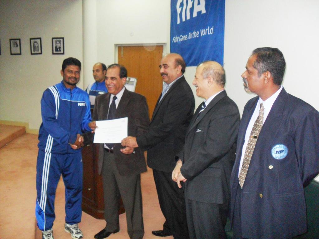 Member Associations Elite Referee course’s closing ceremony was held on Monday (05-12-2011) in Football House Lahore. The 25 referees, 4 Instructor Observers and 6 Referee Assessor who participated in the course received the certificates. In the closing ceremony, the FIFA Technical instructor, Masoud Enayat said that he was pleased with the performance of the referees. “I am very pleased with the performances of the referees both in the theory and in practical sessions”