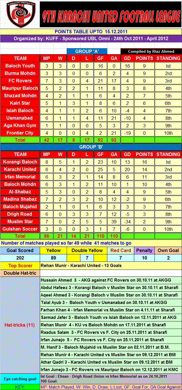 The 9th UBL Omni Karachi United Football League 2011-12 saw a stunning group ‘A’ clash between Kalri Star (Lyari) and FC Rovers (Malir Cantt.) yesterday 15th November 2011 at Trans Lyari Football Stadium, Old Golimar. Kalri Star registered 3-0 win over FC Rovers which was first win after 3 drawn and one lost game in current event.