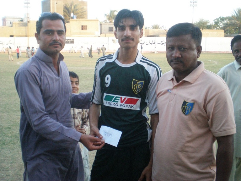 The 2nd half saw increase in tempo as both sides attempted to take the lead. Azam Sports goalie Shahid Islam denied Amin Chottu’s free kick in 66th minute, then Salaar WC’s goalie Adeel Rasheed denied Aqeel Khan the chance to score after combining well with Furqan Ullah for the build-up in 71st minute. Salaar Welfare Centre eventually when 2-1 up when star Abdul Haleem made it 2-1 from a M Asif pass in 75th minute. However, Azam Sports’ hardwork to find another equaliser paid off when just 4 minutes from time (86′) Aqeel Khan scored from a Saleem Ullah pass making it 2-2 at the end of the game. Azam Sports’ Naveed Ullah earned a Man of the Match award worth Rs 500 cash from FC Rovers (Malir Cantt) manager Khalid Majeed.