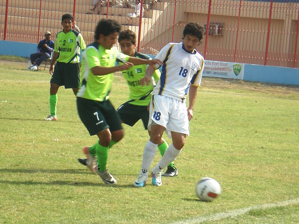 Pakistan Youth A suffered a heavy blow in the 29th minute when their attacking midfielder Junaid Qadir fell unconscious after a nasty collision with KRL’s Kamran. His head hit the ground when he fell on his back while going for a header. He was shifted to the nearby hospital and a team official said that his condition was out of danger.