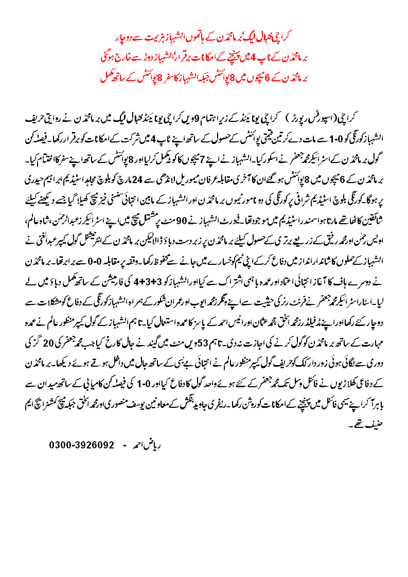 The goal caused Al-Shabaz to go on all out attack in response but opposing goalie Abdul Ghani denied Al-Shabaz various chances to score.