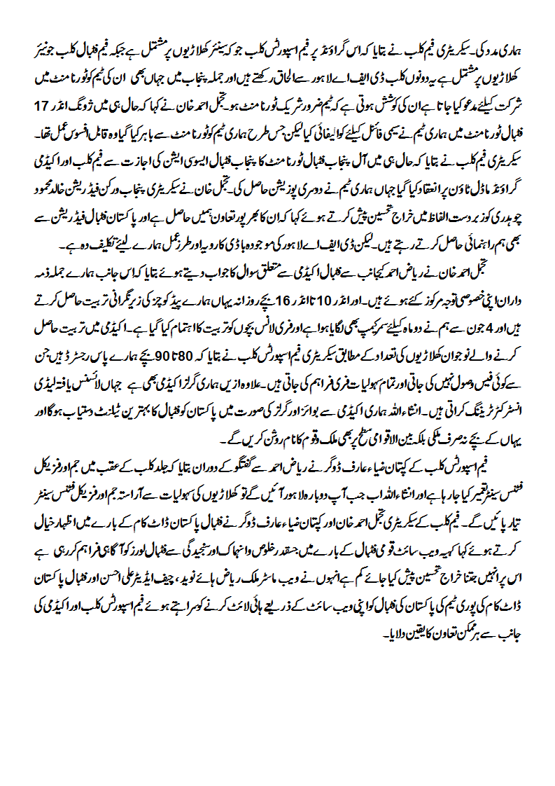In conclusion of the visit, the club officials thanked Riaz Ahmed and expressed special praise for FootballPakistan.Com (FPDC) team led by webmaster Malik Riaz Hai Naveed and chief editor Ali Ahsan. Fame Sports Club management assured FPDC of its full cooperation in any capacity if requested in future as well.