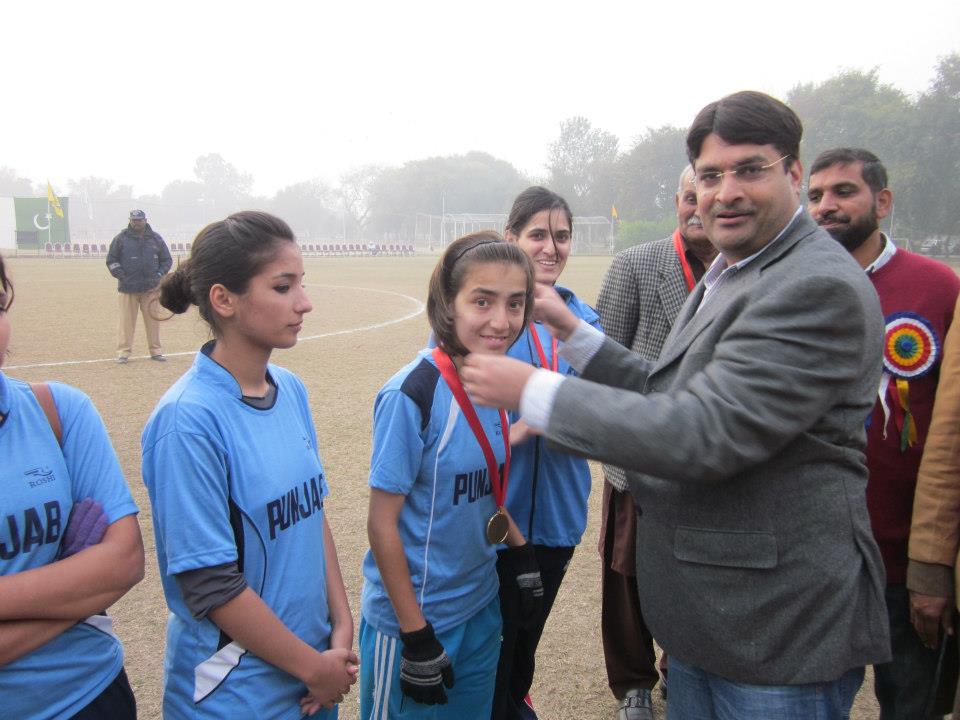 At this Occasion Secretary Punjab Football Association M.Khaled Presented Shields to President Fame Football club Zia Dogar For Organizing the National Games Women Football event successfully.