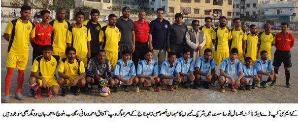 The match between Mahfoze Sports and Azam Sports ended in a 2-2 draw. Sharief Baloch netted two goals for Mahfoz, while Saleem and Aqeel scored one goal each for Azam Sports. Azam Sports later defeated Mahfoze Sports 5-4 on tie breaker, and qualified for the quarter-finals.