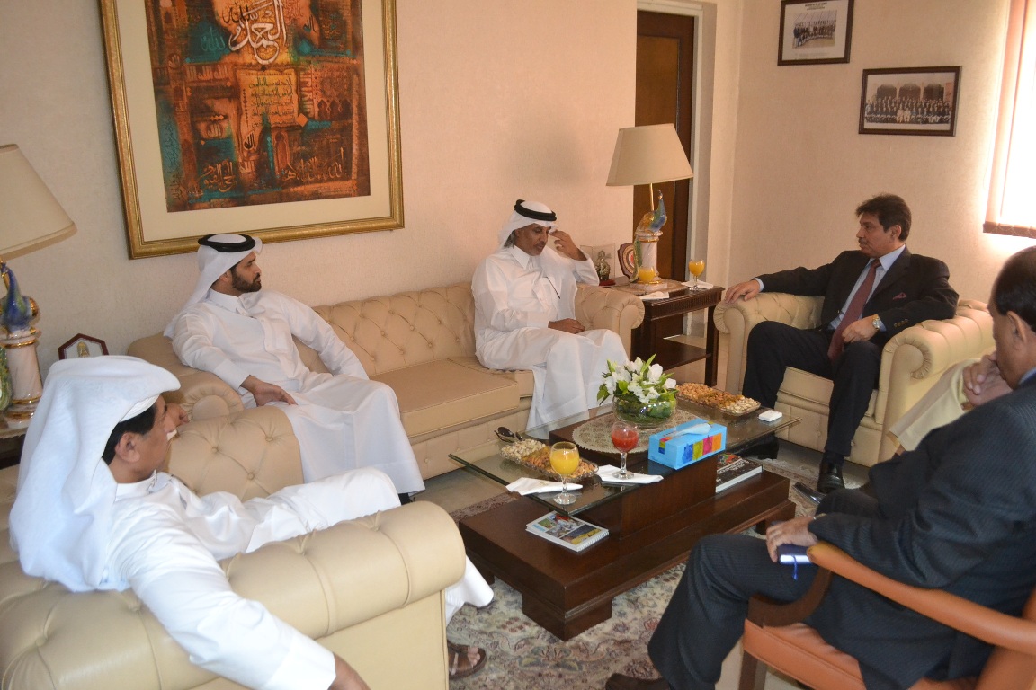 A high powered delegation of Qatar Football Association headed by its PresidentH.E. Hamad Khalifa A.A Al- Thani, held a detailed meeting with Makhdoom Syed Faisal Saleh Hayat President PFF at Football House, Lahore on Sunday 17th March, 2013. The Qatari Delegation comprised of 8 members including Hassan Abdulla H.R Al-Thawadi (General Secretary, Qatar 2022 Supreme Committee), Ali Mohamed N B Al-Naemi (Assistant General Secretary, QFA) and Tariq A. Aziz Al-Naama (Dy. Chairman, Aspire Academy).