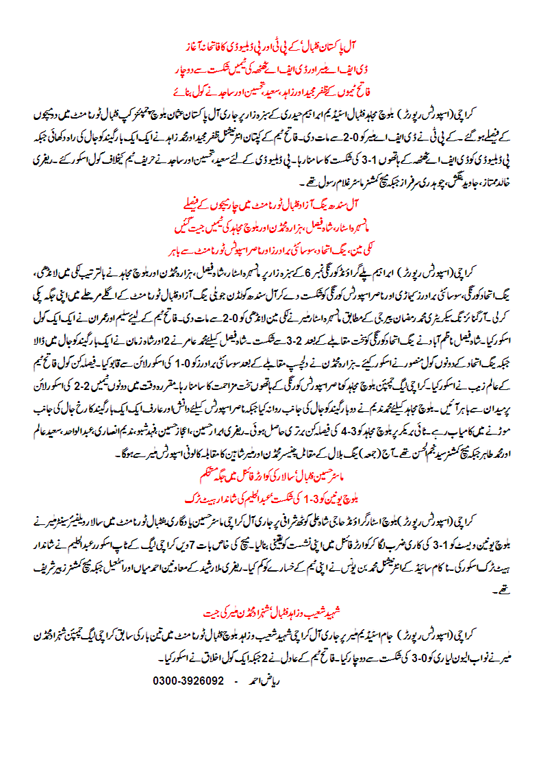 June27June 27, 2013Karachi Football Round Up – 27.6.2013By Malik Riaz Hai NaveedIn National Competitions Other National Competitions