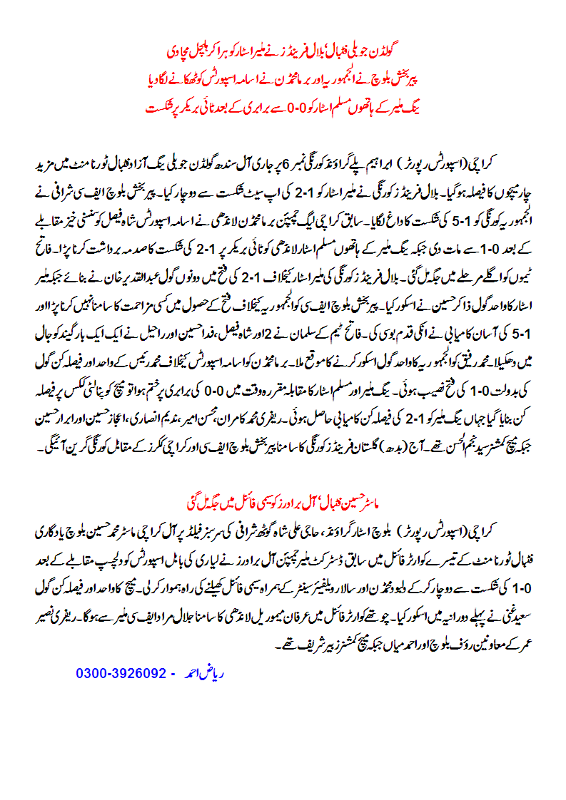 July3July 3, 2013Karachi Football Round up 2.7.2013By Malik Riaz Hai NaveedIn National Competitions Other National Competitions