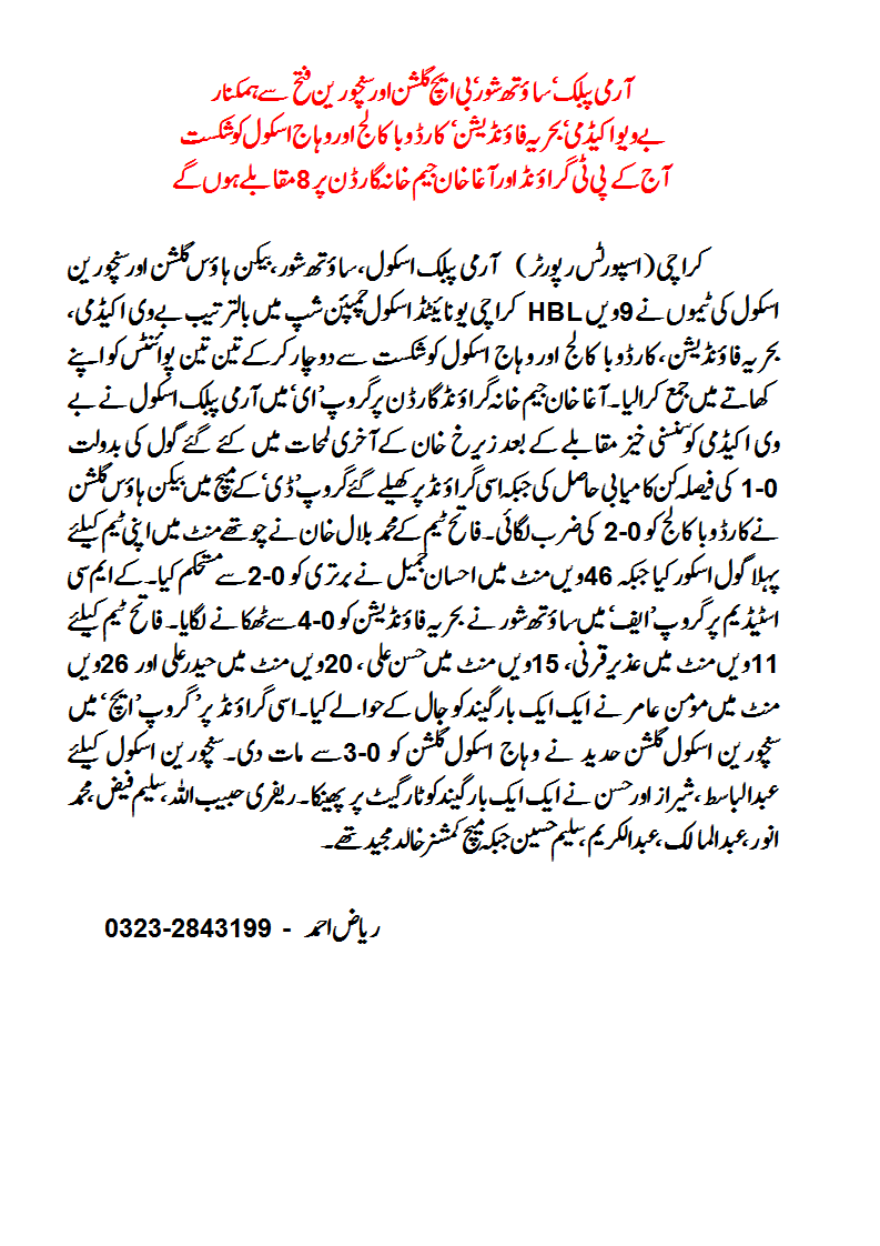 Saqib, Salman Ahmed and Wasiq one goal apiece.
