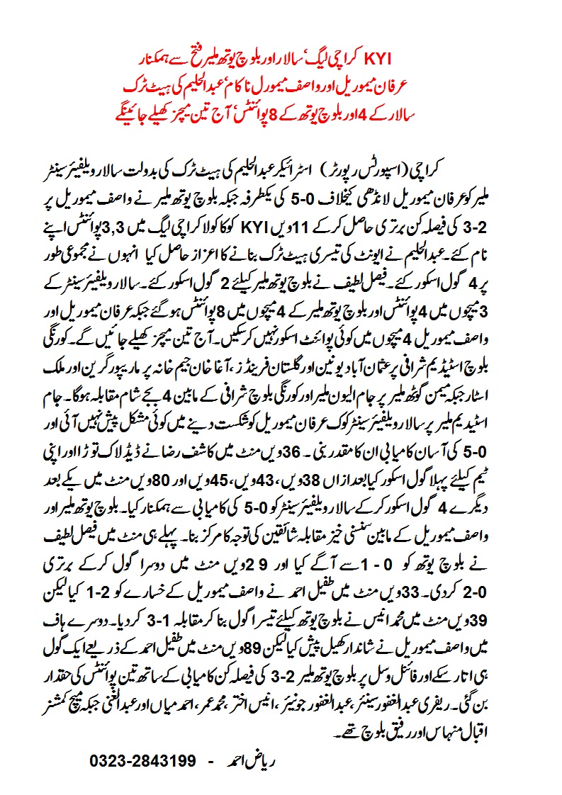 Baloch Youth Malir 8 points from 4 games