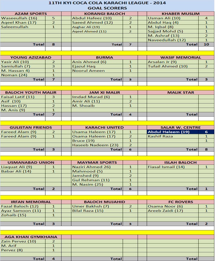 Referees: Abdul Ghafoor Sr. Abdul Ghani,, Anis Akhtar, Mohammad Umar, Ahmed Mian, Abdul Ghafoor Jr. while H.M. Hanif and Rafiq Baloch were Match Commissioner.