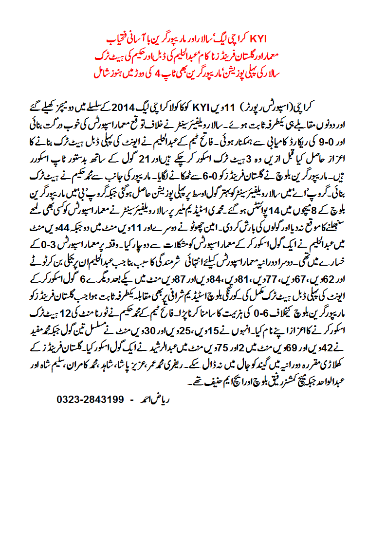 Salar Welfare Centre Malir and Mauripur Green Baloch easily win