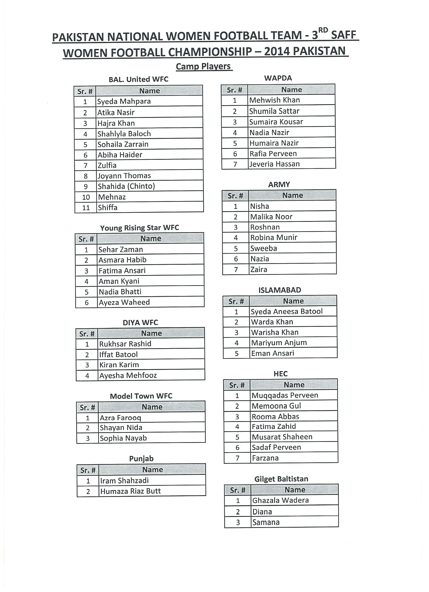 September10September 10, 2014Pakistan Women’s Team start preparation for 2014 SAFF CupBy Editorial StaffIn Nationwide News News SAFF Championship 2014