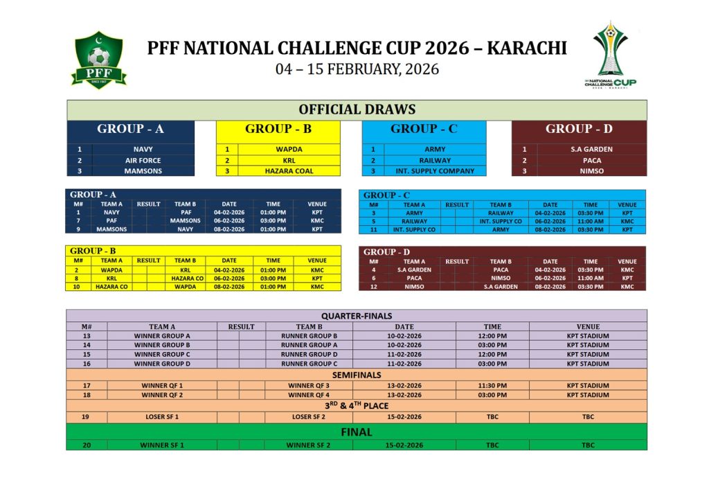 Navy, Pakistan Air Force and Mamsons are in Group ‘A’ while defending champions Wapda headline Group ‘B’ and are alongside KRL and Hazara Coal Company.